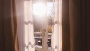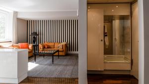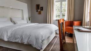 Das Hotel Gerbermühle bietet geräumige und klimatisierte Suiten und Zimmer. Die Unterkünfte sind mit Holzböden, kräftigen roten Farbtönen und raumhohen Fenstern gestaltet.