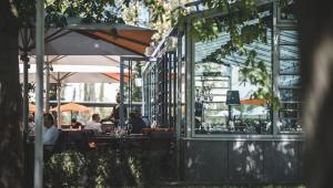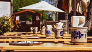Speisen und Getränke erhalten Sie in der Turmbar und im Restaurant der Unterkunft Gerbermühle. In den Sommermonaten können Sie auch im Sommergarten speisen und dabei die schöne Aussicht auf den Main und die berühmte Frankfurter Skyline genießen.