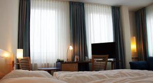 Die hellen Zimmer im Hotel am Fasangarten sind mit Kabel-TV und einem Schreibtisch ausgestattet. WLAN nutzen Sie in einigen Zimmern kostenfrei.