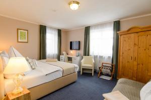 Die heimeligen, hellen Zimmer im Landhaus Ambiente sind mit einem Schreibtisch ausgestattet. Das private Bad erwartet Sie mit einer Badewanne.